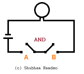 You can see that when both A and B switches are on then only the process of glowing the bulb proceeds.